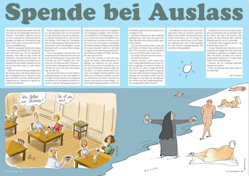 manchmal muss man den Mut haben, Dinge auszuwechseln. Zum Beispiel können unangenehme Termine leicht durch ein paar gemütliche Stunden mit dem aktuellen EULENSPIEGEL ersetzt werden. Unser Artikel zum Untergang des Earl of Orgy (Seite 16) ist jedenfalls besser als jede Darmspiegelung. Die Tipps für Reisen in Krisenregionen (Seite 19) sind weit weniger schmerzvoll als eine Wurzelresektion. Und die KI-Fakes im ZDF (Seite 32) sind viel besser als das normale ZDF-Programm.