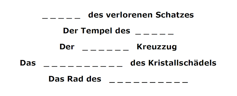 Vervollständigen Sie die 5 Indiana Jones Film-Titel.