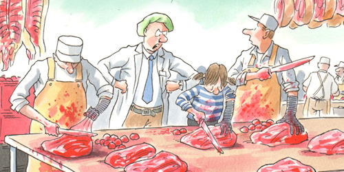 Zum Geburtstag schenkten wir der Kleinen einen eigenen OP-Saal aus Vollplastik. Wir dachten, vielleicht könnte sie mit ihrer Vorliebe für Blut Chirurgin werden. Das ist ein toller Beruf, wenn man starke Venen hat und lange stehen kann. Das Kind schaute uns gelangweilt an und fragte, ob es auch Rollstühle für Kinder gäbe. »Ja«, antwortete ihr die Oma, gestützt auf ihre Gehhilfe, und brach in Tränen aus. Das Kind soll doch dankbar sein, für zwei gesunde Beine.