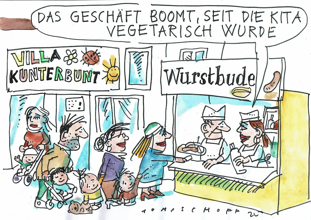 Leider kommt niemand mehr. In sämtlichen In-Bezirken der Stadt schwächelt die Babyproduktion. In Pankow wären die sterbenden Kitas sogar bereit, Kinder aus dem Brandenburgischen aufzunehmen – quasi eine ganz andere Rasse! Auf den Spielplätzen betteln verzweifelte Elterninitiativler bei syrischen Großfamilien um mindestens eines ihrer Kinder. Auch wenn damit der Migrationsanteil bedrohlich steigen und das »Stadtbild« in der Kita beträchtlich nachdunkeln würde, wären die kleinen Fremden herzlich willkommen. Man würde auch auf Hundesitting ausweiten oder Senioren mitbetreuen. Vielleicht könnte ein privater Bus-Shuttle die kinderreichen Proletarier-Viertel abfahren und Streuner nach Mitte bringen, um die drohende Schließung zu verhindern.