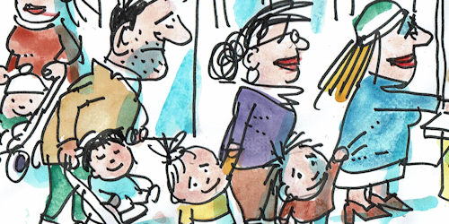 Aber alles ist vergeblich: Eine Kita nach der anderen macht dicht, hunderte Vereins-Eltern, die durch das Betreiben einer Elterninitiative ihren Lebenssinn gefunden hatten, landen auf der Straße. Denn natürlich kommen die Kleinen, die noch da sind, auch in einer seelenlosen Aufbewahrungskita unter, sozusagen dem Staat überlassen – und was der Staat für einer ist, das wissen wir ja … Und was macht die engagierte Elternschaft dann den lieben langen Tag? Man sieht sie schon vormittags in den Cafés vor sich hin sinnieren.