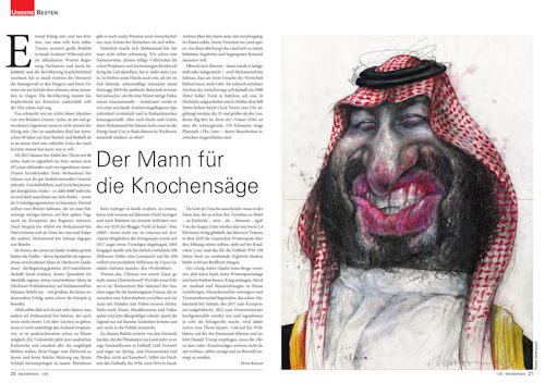Das schmeckt wie ein schön böses Märchen von den Brüdern Grimm. Indes, in der real gewordenen Gegenwart muss es nicht einmal der König sein. Der im saudischen Riad hat inzwischen 90 Jahre auf dem Buckel, und deshalb ist es an seiner Statt sein vollreifer Sohn, der nach kurzem Anlauf tun kann, was er will.