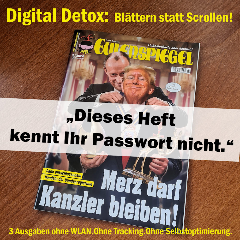 Der Cartoon der Woche erscheint auch in der EULENSPIEGEL-App.