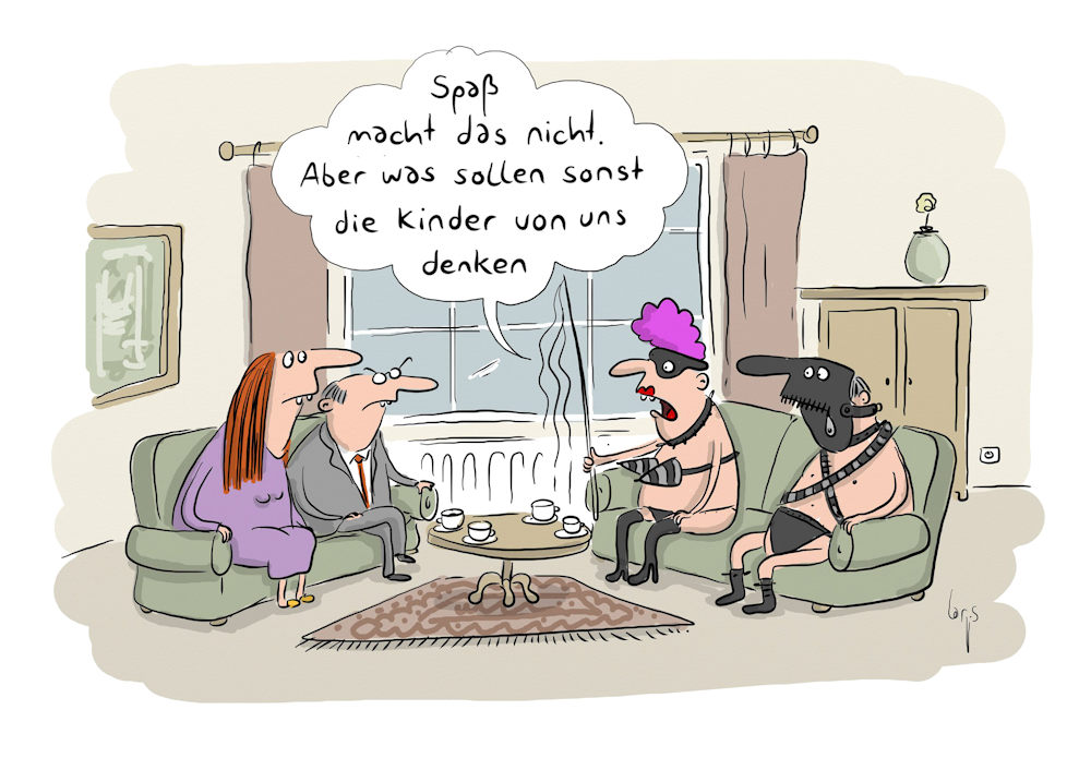 Die Super-Eltern eines Einzelkindes hatten mittlerweile Beweisfotos der »mega krassen Übernachtungsparty« unserer Jungs in die Chatgruppe gestellt. Wie glückliche Teenager auf Klassenfahrt sitzen die Silvie und der Heiner inmitten der frühreifen Horde auf dem Designer-Teppich und spielen »Wahrheit oder Pflicht«. Die Mutti im BH, der Papa ohne Hose.