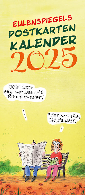 28 durchgängig vierfarbige Kalenderblätter in Form stabiler, farbenfroher Hochglanzpostkarten führen mit Witz und Spaß durch das Jahr. Hier können Sie die Extra-Portion Humor tanken, mit der Sie gutgelaunt durch das Jahr kommen. Scharfsinnige Pointen und skurrile Einfälle für sämtliche Jahres- und Lebenslagen: von den Frühlingsgefühlen bis zur Winterdepression. Ob als Wandkalender an der Küchentür oder im Büro, die Laune steigt, fällt nur der Blick darauf. Natürlich lassen sich die Blätter des Kalenders auch abreißen und als Postkarten zu allen möglichen Anlässen oder einfach nur als augenzwinkernder Gruß verschicken.