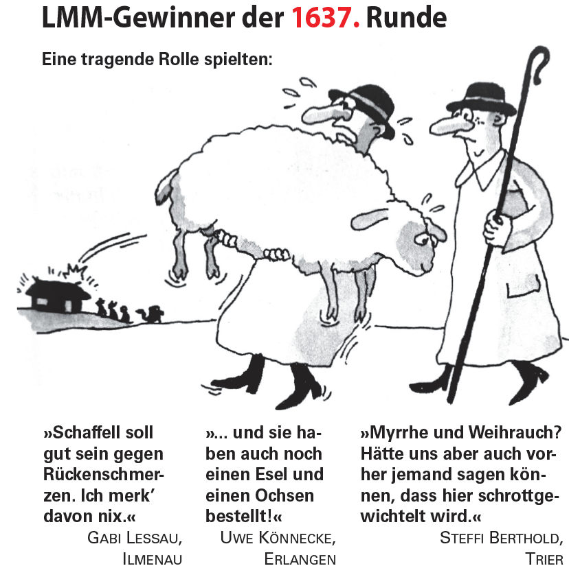 Liefern Sie uns zu dieser Zeichnung eine passende Unterschrift. Für die drei originellsten Sprüche berappen wir 16, 15 und 14 Euro.