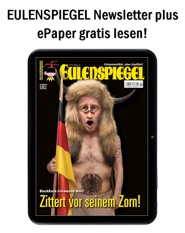 Stellen Sie sich Popcorn und vor allem ein paar Nüsse bereit, denn im neuen EULENSPIEGEL, befinden sich nicht nur ein paar echte Kronjuwelen, sondern es werden darin wieder sämtliche Glocken geläutet und den Gemächtigen ordentlich was auf den Sack gegeben! Im Heft gibt es u.a. Prügel für Putin (Seite 16), fünf Sterne für Jeff Bezos (Seite 20) und Socken der Freiheit (Seite 24). Eiern Sie also nicht lange rum, sondern schließen Sie am besten sofort ein Abonnement ab!
