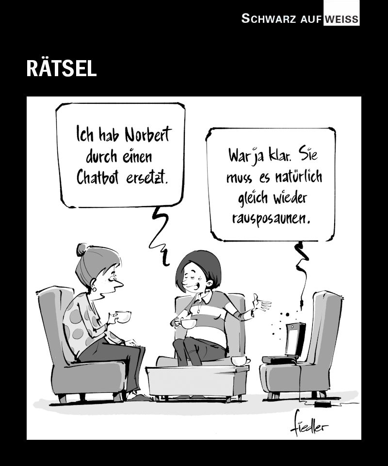 Jeden Freitag: EULENSPIEGEL Rätselspaß mit einem Schwarz-Auf-Weiss-Cartoon