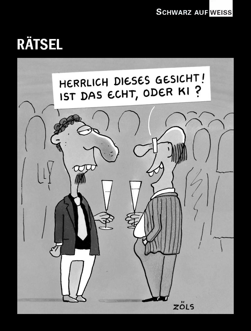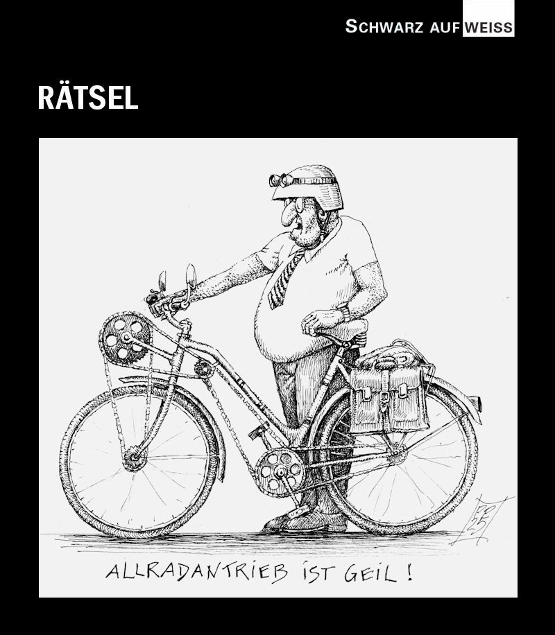 Jeden Freitag: EULENSPIEGEL Rätselspaß mit einem Schwarz-Auf-Weiss-Cartoon