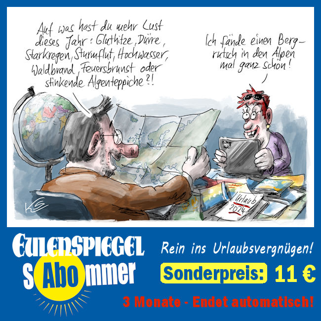 Witzige Cartoons und bissige Satire per Newsletter Melden Sie sich jetzt kostenlos an: Vorname oder ganzer Name E-Mail Cartoon der